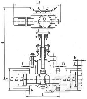 電動法蘭閘閥 主要外形尺寸