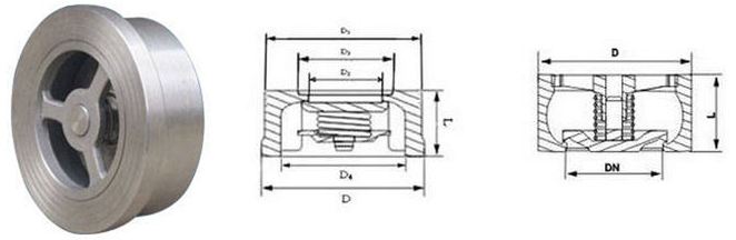 H71H、H71W 型 PN10~PN40 對夾升降式止回閥由閥體、閥瓣、彈簧等組成,水平或垂直安裝于管路系統,防止介質倒流。